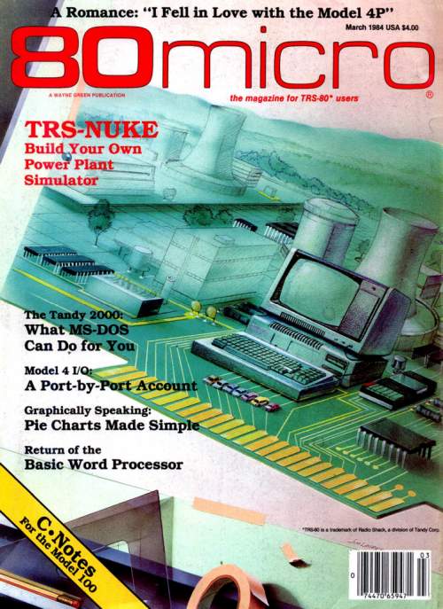 The March 1984 issue of 80 Micro magazine contained the first article in a six-part series I wrote describing how to write arcade games in assembly language for the TRS-80.